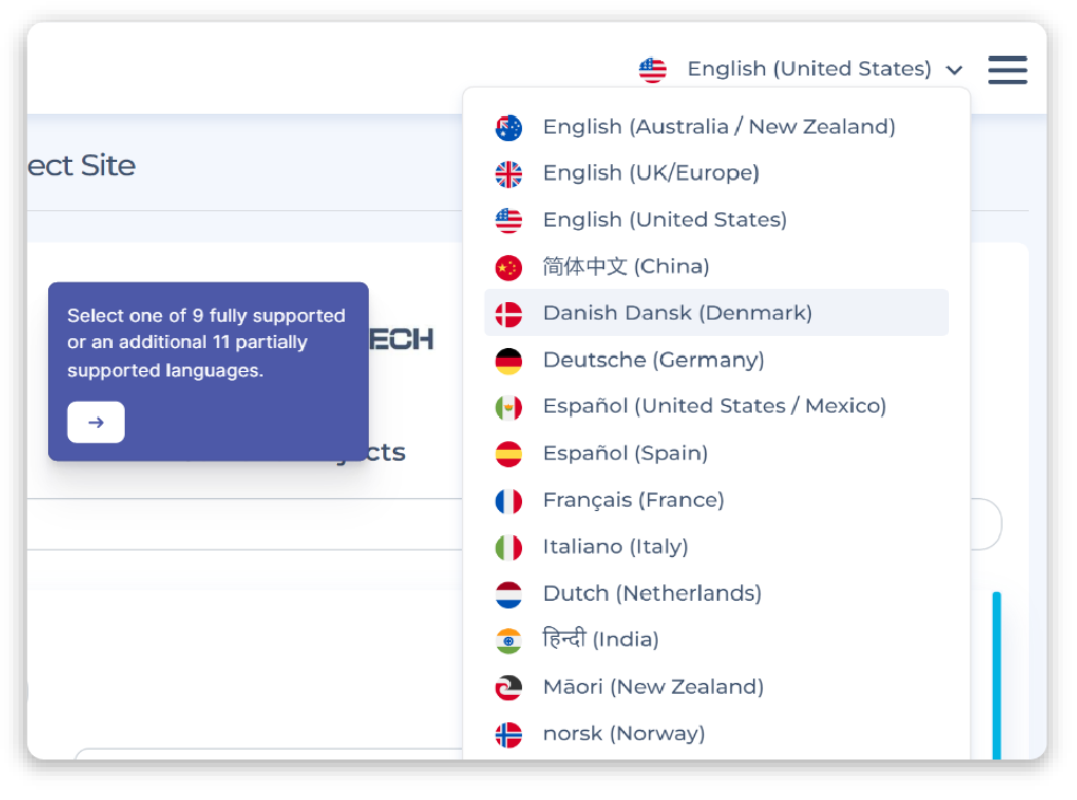 An additional 11 languages are available for the most touch part of HammerTech including Worker Registration, the Menu, public project pages, and custom fields that have been configured in that language.
