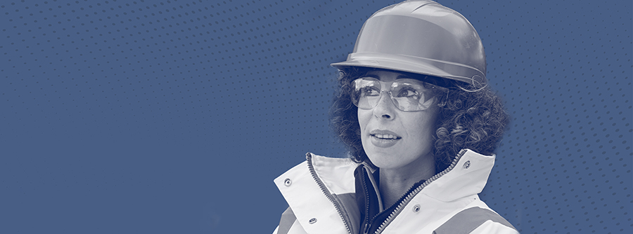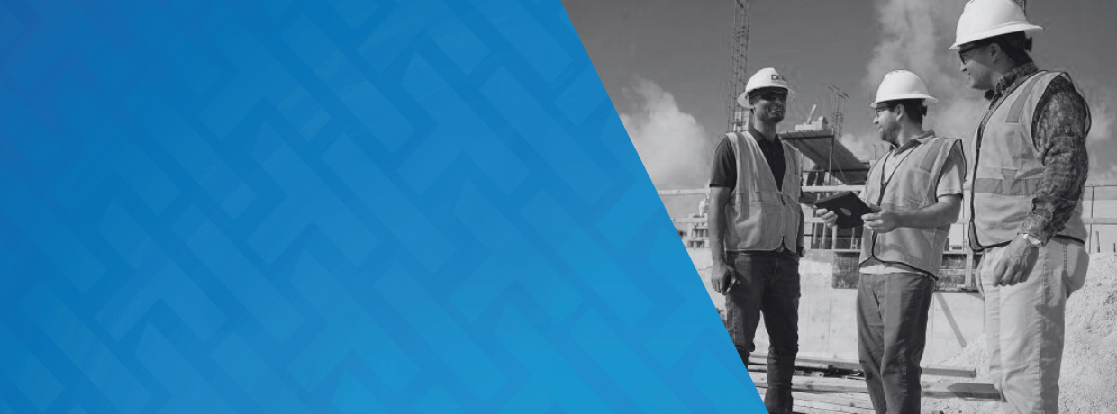 Image of construction site workers discussing safety and engaging together.
