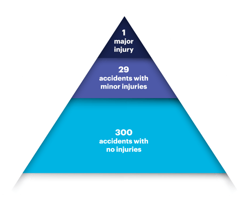 Heinrich's triangle theory that states: "For every 300 accidents with no injuries, you'll have 29 accidents with minor injuries, and one major injury.